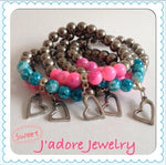Een armbandje in de kleuren zilver en blauw met een hartjes bedel
