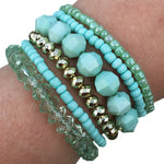 3x facet armbandje acryl en 3x rocailles armbandje glas.