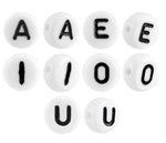 Maak je sieradencollectie nu nóg kleurrijker en persoonlijker met deze serie letterkralen van acryl! Deze letterkralen zijn verkrijgbaar in een klinker mix van Wit en zwart. In deze klinker mix zitten 20 kralen waarvan 4x de A, 4x de E, 4x de I, 4x de O en 4x een U. Ze zijn gemaakt van acryl, wat ze licht en sterk maakt. De kralen hebben een diameter van 1.5 mm, waardoor ze geschikt zijn voor het maken van armbanden, kettingen, oorbellen en meer.
