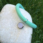 Armband van dreamz koord, afgewerkt met dq eindkapjes, een klein kapittelslotje en basic ss39 hanger.