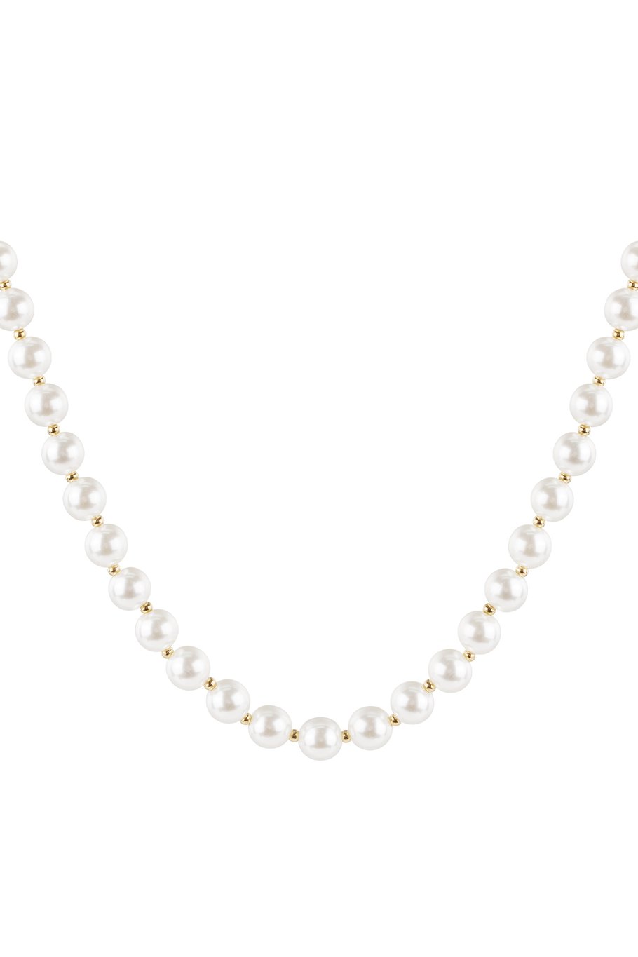 Prachtig en klassiek, dat is deze grote kralen ketting in de kleur wit met gouden details. Doordat de ketting gemaakt is van RVS, verkleurt deze niet! De ketting is 43 cm lang en 5 cm verstelbaar middels een sluiting en verlengkettinkje.