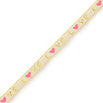 Dit roze-limegroene polyester lint met "love" tekst is 10mm breed en 1 meter lang. Gebruik een RVS Smart bead stopper of lintklem om een trendy armband te maken.