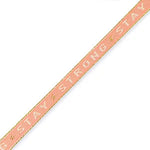 Dit roze-limegroene polyester lint met "stay strong" tekst is 10mm breed en 1 meter lang. Gebruik een RVS Smart bead stopper of lintklem om een trendy armband te maken.
