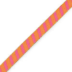 Dit roze-limegroene polyester lint met strepen Orange-pink is 10mm breed en 1 meter lang. Gebruik een RVS Smart bead stopper of lintklem om een trendy armband te maken.
