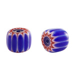 Millefiori glaskraal tube blue red 6x7mm