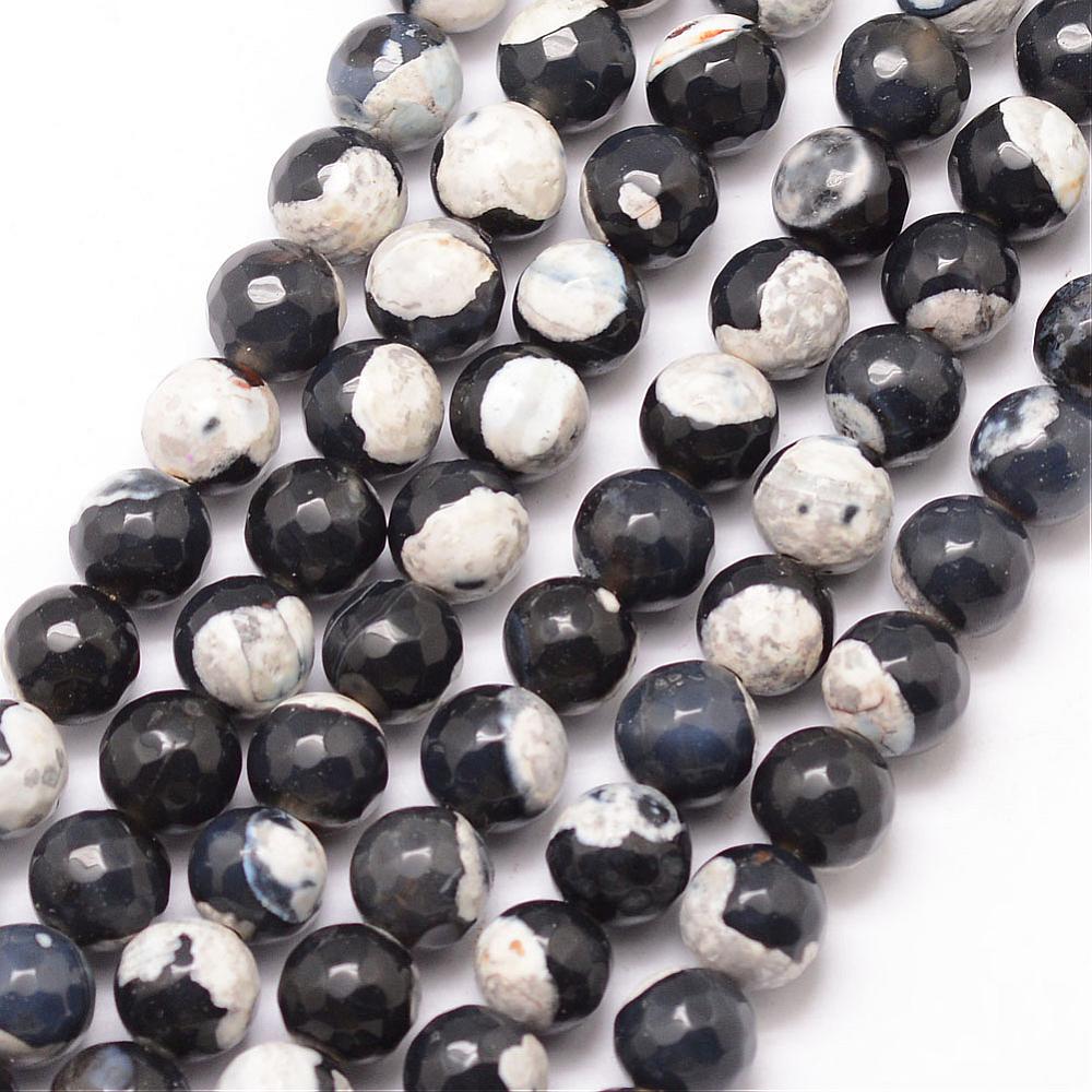 Natuursteen kralen Fire Crackle black & white Agaat 6mm