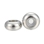 Onderdelen RVS metaal kraal macramé slot disc 10x4mm. Er passen twee draden van Ø2mm door deze kraal. Doordat de binnenzijde van rubber is, blijft het rijgmateriaal goed op zijn plek. Je kunt deze discvormige kraal op meerdere manieren gebruiken; je kan de kraal gebruiken als stopper en er een bedeltje tussen hangen, zodat deze op zijn plaatst blijft. De kraal kan ook als sluiting fungeren, aan het uiteinde van de stukken rijgmateriaal bevestig je eindkapjes, bij het uittrekken houdt de discvormige kraal de eindkapjes tegen.