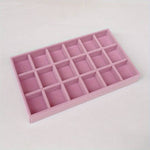 Luxe sieradendisplay bekleed met velours. Dit display heeft 18 vakken waarin je de sieraden mooi kunt presenteren. Ook is dit display ideaal voor het opbergen van sieraden in bijvoorbeeld een kledingkast!