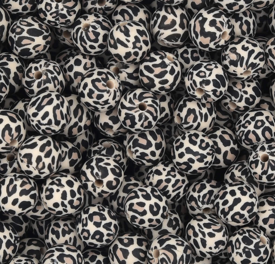 Siliconen kralen 12mm rond Panter