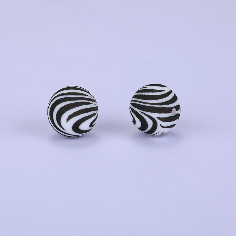 Siliconen kralen 15mm rond met zebra print: Fijne basis kraal voor speenkoord, pen & sleutelhanger