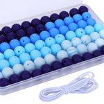 Siliconen kralen box rond 15mm Blauw: Fijne basis kraal voor speenkoord, pen & sleutelhanger