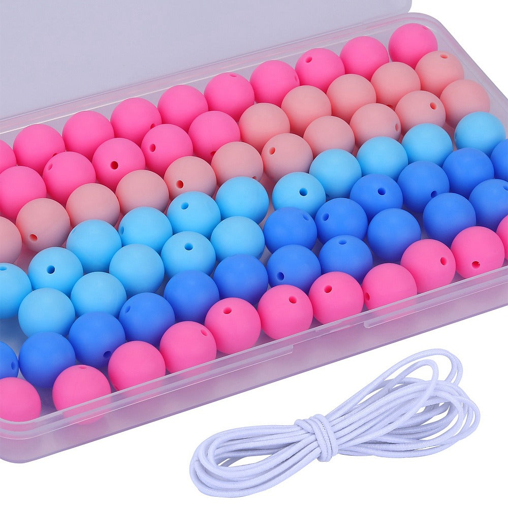Siliconen kralen box rond 15mm Roze Blauw: Fijne basis kraal voor speenkoord, pen & sleutelhanger
