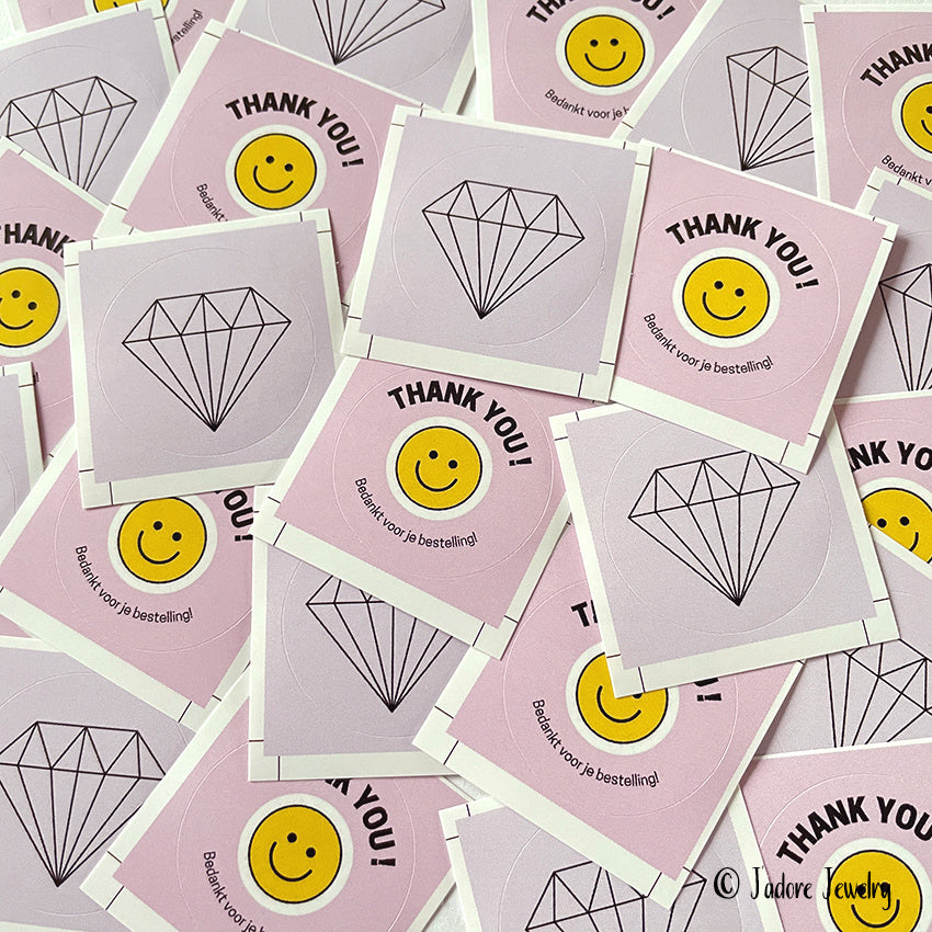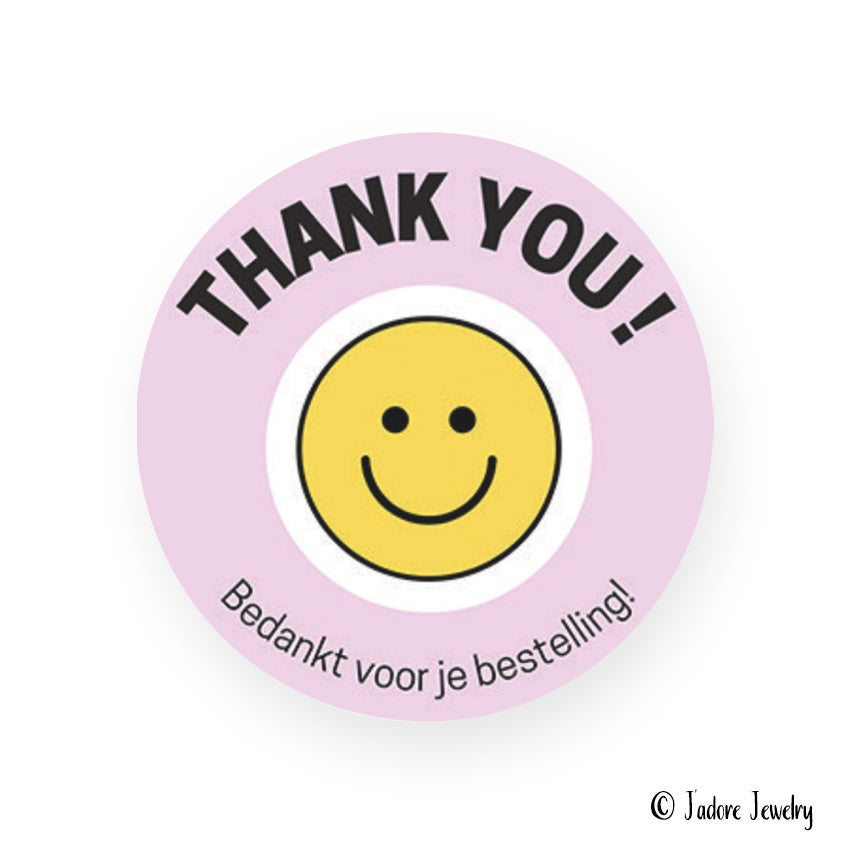 Sticker bedankt voor je bestelling roze: Maak je dag vrolijker met lachende gezichtjes!